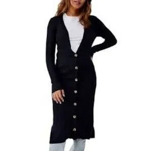 Free People long black ribbed cardigan