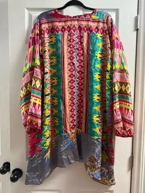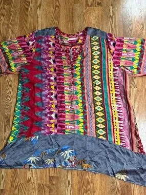 Johnny Was Kamelia Mixed Print V-Neck 100% Silk Blouse Size 2X