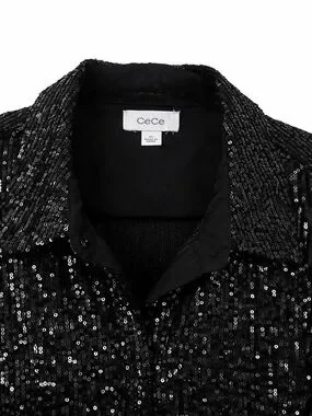 CeCe Black Sequin Button-Down Shirt