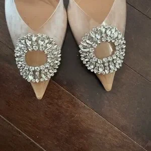 Chic Zara heels in beige. Features sparkling crystal detail. Perfect for elevating any look.