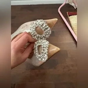 Zara Women's Tan Heeled Shoes clear with Crystal Embellishment sling back