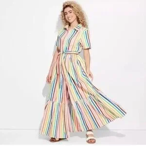 Target Pride Adult Striped Rainbow Short Sleeve Maxi Shirtdress