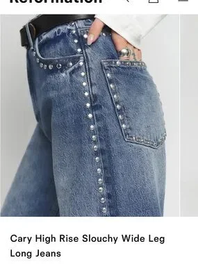 Reformation Studded High-Rise Wide Leg Jeans in Light Blue Denim