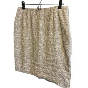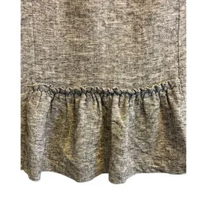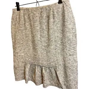 Canadian Designer Muriel Dombret Linen Skirt, Size 10, Textured Neutral Minimalist Ruffle Detail