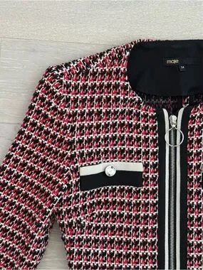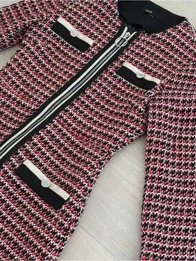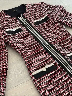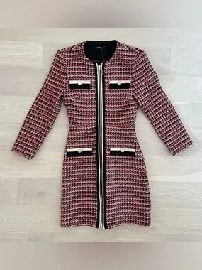 Maje Paris Romane Tweed Dress Full Zip Long Sleeve - Size 34