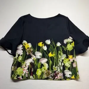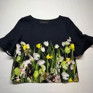 Victoria Beckham Target Floral Crop Blouse Black Garden Print Top S Statement