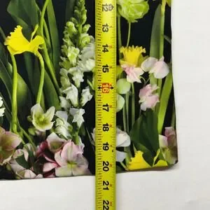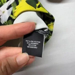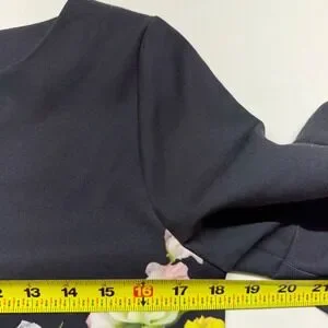 Elevate your wardrobe with this stunning Victoria Beckham for Target floral blouse, featuring a vibrant botanical print of tulips and daffodils against a sleek black background. The top is designed with a modern boxy silhouette and elegant bell sleeves that add a touch of sophisticated drama to any outfit. Crafted from a comfortable stretch-crepe fabric, it offers both style and ease of movement. This piece is in excellent pre-owned condition, maintaining its crisp colors and structured shape. Perfect for a garden party, a chic office look, or a weekend brunch.