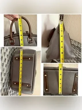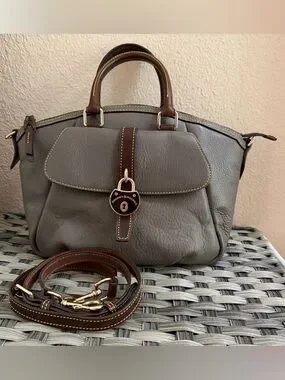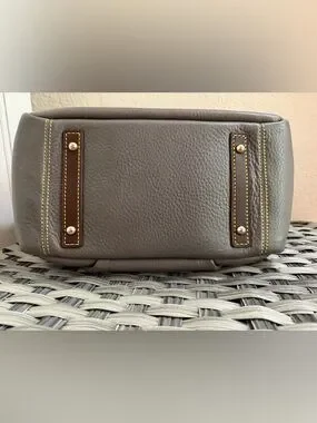 Dooney & Bourke Gray Pebbled Leather Satchel with Brown Trim