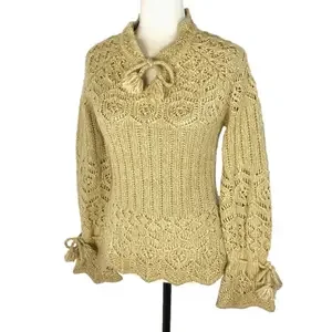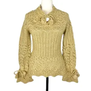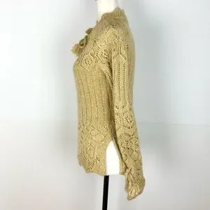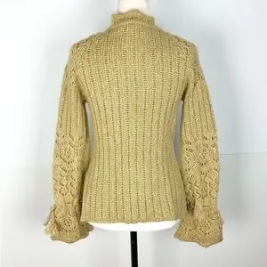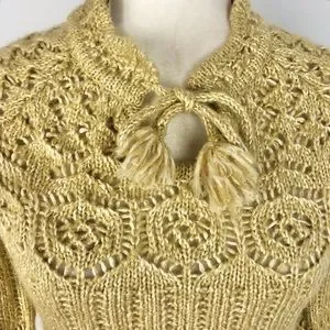 Crochet details. Tassels at the collar and cuffs. Slit at the sides.