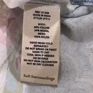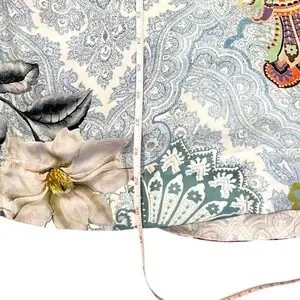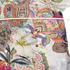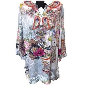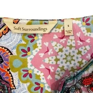 Soft Surroundings Boho Beaded Paisley Floral Tunic Top Blue Pink Womens Small