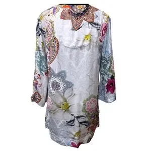 Keywords: Boho, Bohemian, Artisan, Embellished, Beaded, Paisley, Floral, Coastal Grandma, Eclectic, Festival, Tunic, Colorful, Summer, Vacation, Resortwear