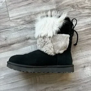 Ugg Boots Patchwork fluff white beige black shoe 10 shearling