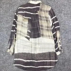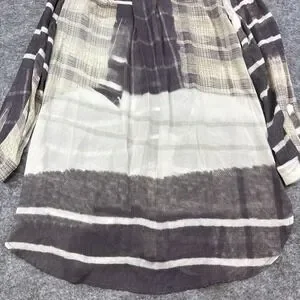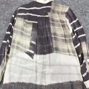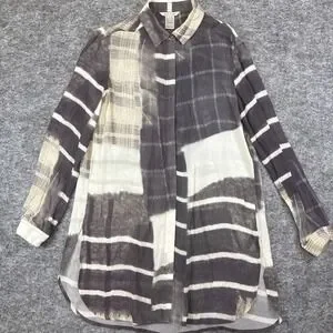 John Mark tunic top women's small gray tan neutral geometric long sleeve button down silky boho wearable art