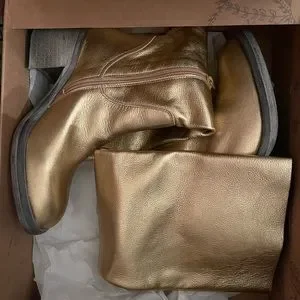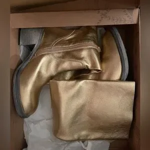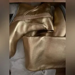 Gold leather FREE PEOPLE boots knee high. So pretty! 100%leather.