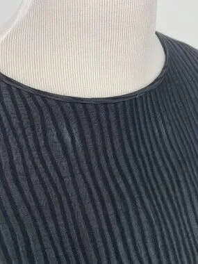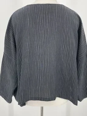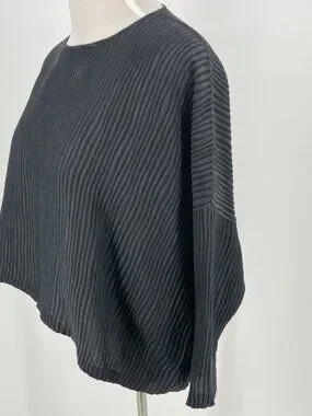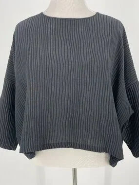 Planet by Lauren G 50% Linen 50% Silk Black Ribbed Boxy Top OS