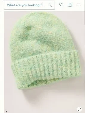 Soft fuzzy knit beanie from Anthropologie. Mint green with subtle multitone flecks. Ribbed fold-over cuff for a cozy fit. Lightweight and plush for everyday wear.