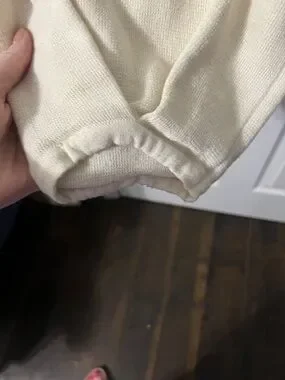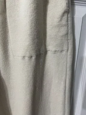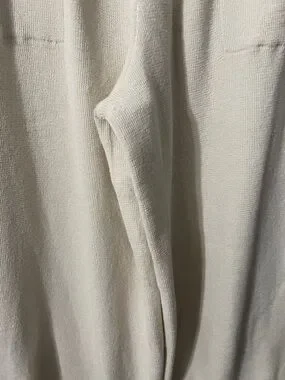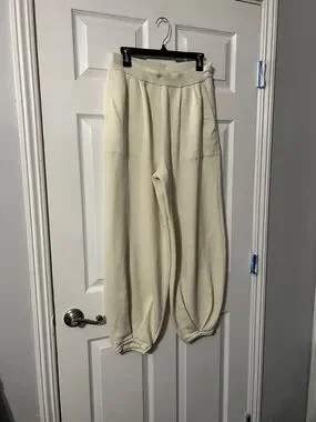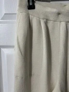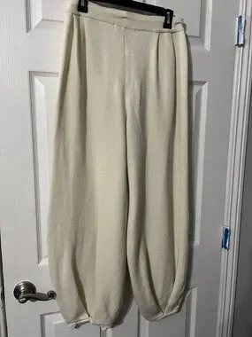 Soft cream wide-leg pants with an elastic waist and gathered cuffs. Lightweight, breathable fabric for all-day comfort. Versatile cream color works well with casual and loungewear outfits. Easy-care and designed for relaxed wear. waist straight across is about 15 inches but stretches leg inseam is 28 inches very soft. Very cute.
