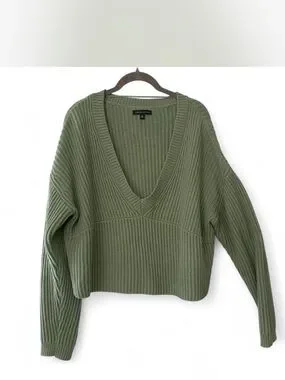 Preppy Minimalist Size M Olive Ribbed Cropped Sweater - Women