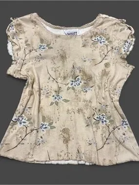 VTG Disorderly Conduct Y2K Floral Calligraphy Lettuce Edge Top