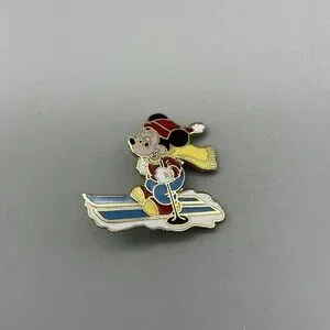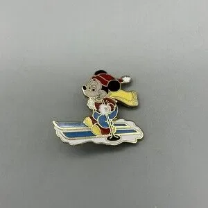 Vintage Walt Disney Productions Mickey Mouse Skiing Pin 27mm Enamel Multicolor