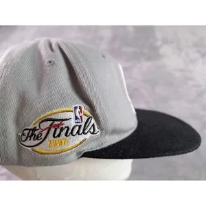 Mitchell & Ness San Antonio Spurs snapback hat from the 2007 NBA Finals. Features a grey crown with a black brim and embroidered team logo and Finals side patch.