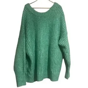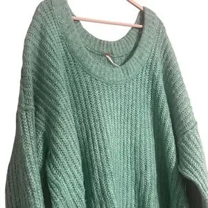 Free People slouchy sweater Knitted Blue Bell V Neck Pullover medium oversized