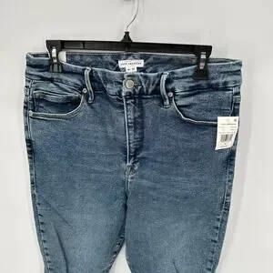 GOOD AMERICAN NWT Good Waist Crop Denim Jean in Blue799 // 14