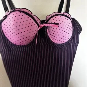 Y2k pink and black pinstripe coquette baby doll 35b