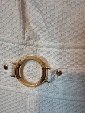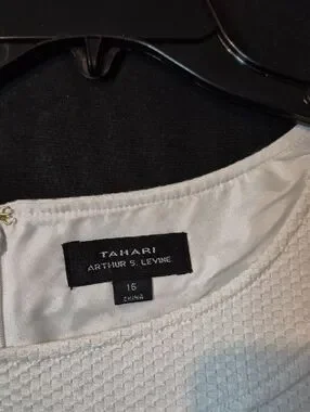 Tahari White Textured Midi Sheath Dress with Gold Buckle Detail