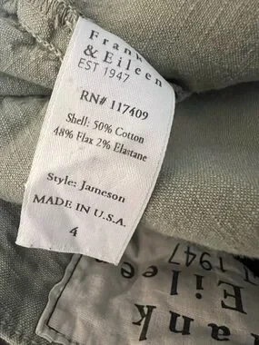 Frank & Eileen Jameson Jogger Pants Linen Blend Sage Green Size 4