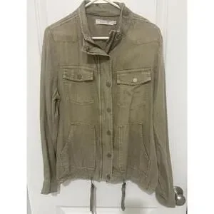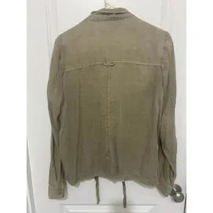 Features button and zipper front closure, flap chest pockets, and drawstring waist for adjustable fit.