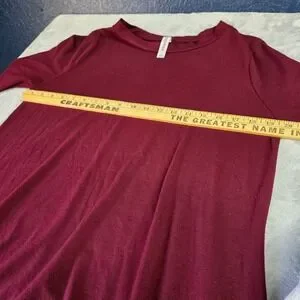 The Zenana Premium Women Size Large Maroon Red Pull On Dress features a solid pattern with a round neck and 3/4 sleeves for a classic style. The high-low maxi length in the back adds a touch of elegance, while the pullover closure makes it easy to wear for casual occasions. Made from a blend of polyester, spandex, and rayon, this knit fabric dress is machine washable for convenient care. Perfect for all seasons, this dress from Zenana is a versatile addition to any woman's wardrobe.