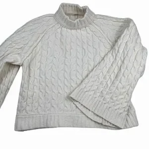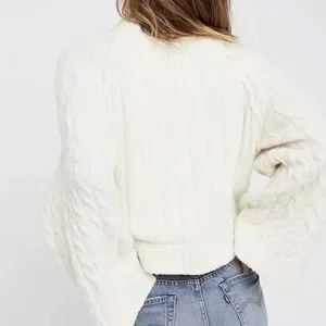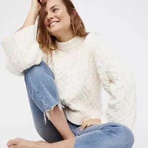 Free People Cable Knit Slouchy Boxy Oversized Sweater Ivory Size Large Chunky