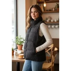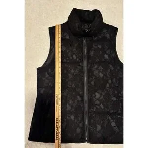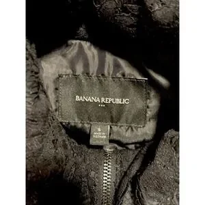 The Banana Republic Lace Overlay Puffer Vest in size Small is a stylish and versatile outerwear option for women. Made with a durable nylon outer shell and featuring a puffer jacket style, this vest is perfect for adding a touch of femininity to any outfit. The black color and lace overlay detail make it a chic addition to any wardrobe, while the regular fit ensures a comfortable and flattering silhouette. Perfect for layering in the colder months, this vest is a fashionable and practical choice for any woman on the go.