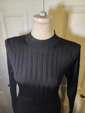 Abercrombie & Fitch Ribbed Knit Dress Women Large Black Bodycon Midi Long Sleeve