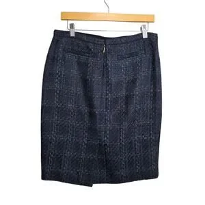 Tory Burch Womens Drew Glazed Navy Blue Tweed Pencil Skirt SZ 8 Professional