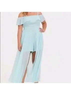 torrid Disney Jasmine Light Blue Off-Shoulder High-Low Maxi Jumper Dress Costume