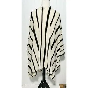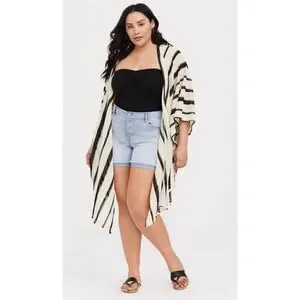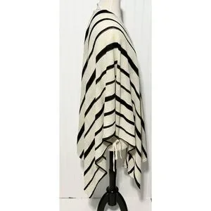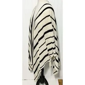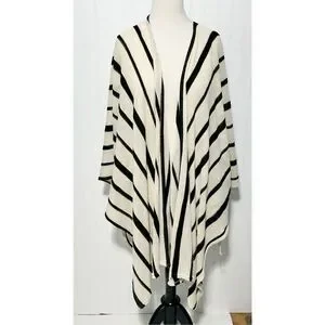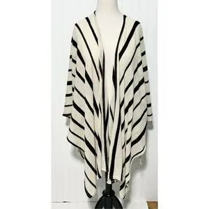 Torrid Striped Ruana Open Front Asymmetrical Kaftan Coverup Black White One Size