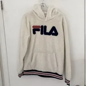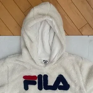 FILA long sleeved soft fleece fuzzy "teddy bear" hoodie with LARGE FILA logo on the front.