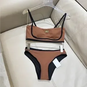 alo yoga Coffee Contrast Trim Bikini Set