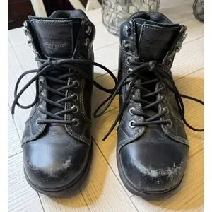 Harley Davidson Women Tyler Lace Up Chukka Ankle Boot 84280 Black Leather 8.5. Moto. Biker. Toes shoe some wear, nothing a lil polish wouldn't fix. Smoke free