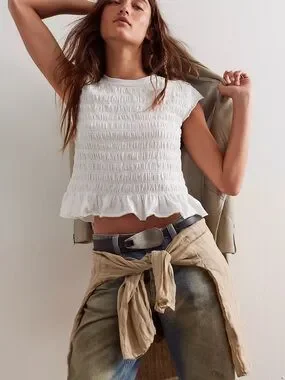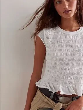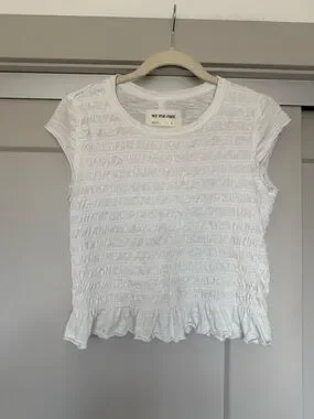 We the Free Sylvie Tee White Smocked Ruffle Top - Women
