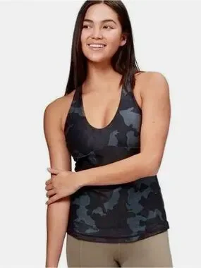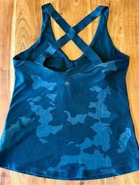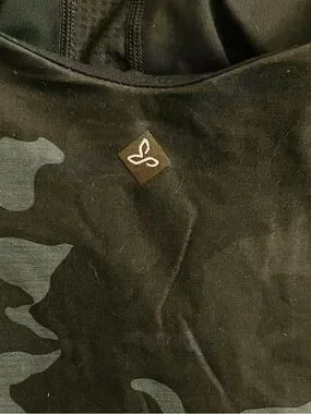 prAna Layna Bra Tank Scoop Neck Cross Back Black Camo Yoga Workout Small