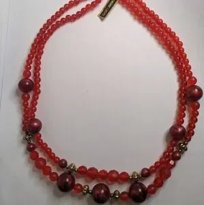 #VintageLucite #HongKongJewelry #RetroNecklace #1950sStyle #MidCenturyFashion #LuciteBeads #RedBeadedNecklace #VintageFinds #ClassicStatement #DoubleStrandNecklace #VintageVibes #PoshStyle #CollectibleJewelry #VintageAccessories #GenuineLucite