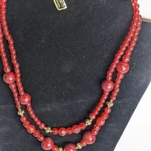 Vintage Genuine Lucite Double-Strand Red Bead Necklace – Made in Hong Kong