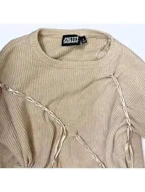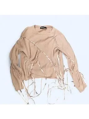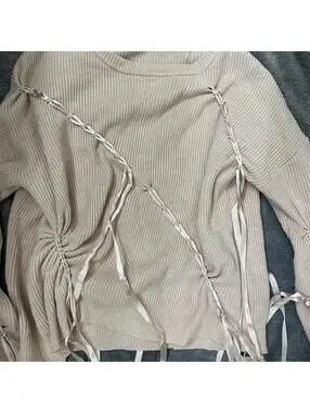 Pink ribbed sweater with ribbon detail Size S #festival #raver