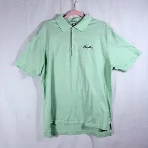 Men’s Peter Millar Golf Polo L Cotton Mint Green Striped Sea Island Logo