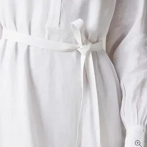 This breezy style comes with a V neckline that shows a hint of skin, a removable tie at the waist for a cinched-in effect and gathered details along the collar and cuffs. Plus, it's crafted from lightweight 100 percent linen to keep you cool all day long.