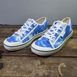 Keen Elsa Lite Blue and White Tie Dye Comfortable Lace Up Canvas Sneaker. 8.5