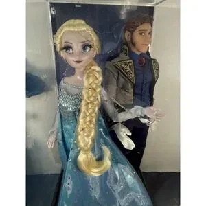 Beautiful Disney Store Fairytale Designer Collection doll set featuring Elsa and Hans from Frozen. This Limited Edition collectible (2359 of 6,000) showcases elegantly designed outfits, intricate details, and high-quality craftsmanship, capturing the contrast between hero and villain. Perfect for Disney fans, Fairytale Designer collectors.